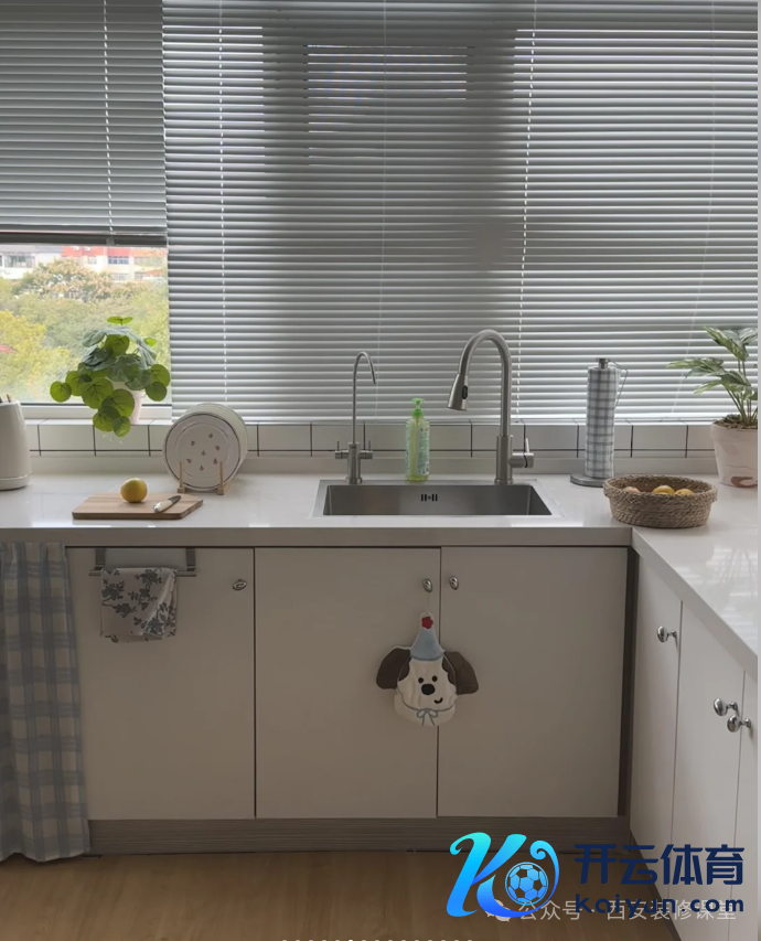 厨房细节 ▪️长3.3m,宽2.2m,总面积7 ㎡ ▪️石英石纯白台面 ▪️柜子是木匠打的,肤感白 ▪️吊顶是铝扣板,低廉也耐看 杂物齐装进柜子里,不想台面太乱