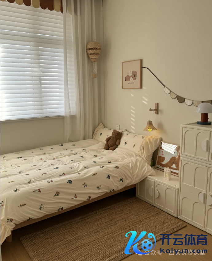 儿童房唯有8平米,靠窗放了1.2m的小床,摆布放了一转收纳柜